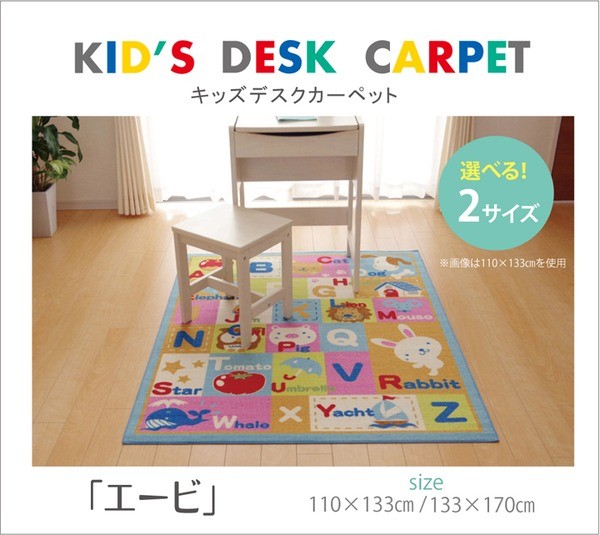 学習机用のデスクカーペットです。いろいろなかわいいアニマル柄が特徴です。表地はループタイプになっており、毛足が短く掃除がしやすい仕様になっています。裏地には不織布を使用していますので、フローリングが傷つきにくいです。お子様の学習机の下や、ベッドサイドなどにお勧めの商品です。