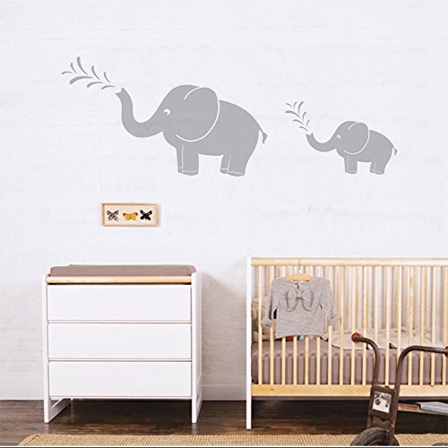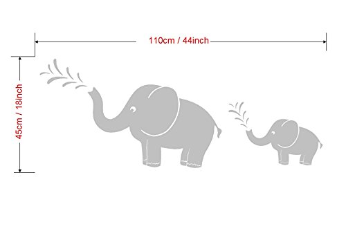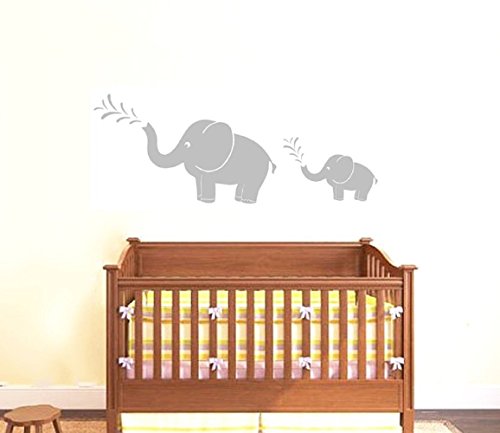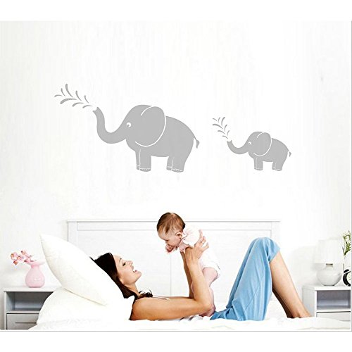 Two Cute Family Elephants Wall Decal Blowing Water Vinyl Wall Decal Sticker for Nursery Baby Room Decoration (Grey)