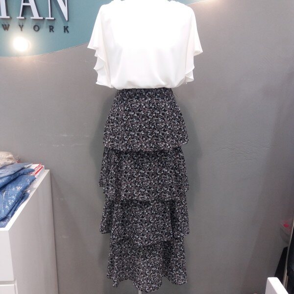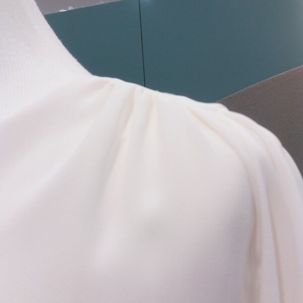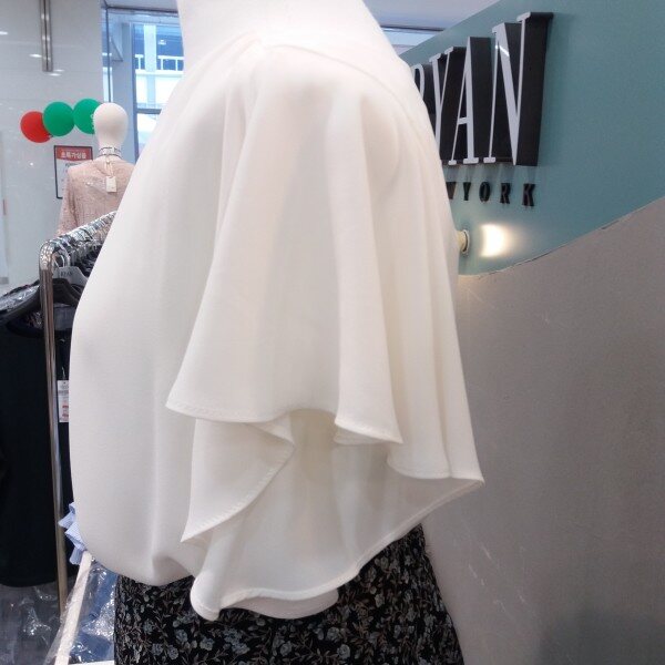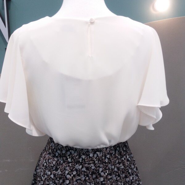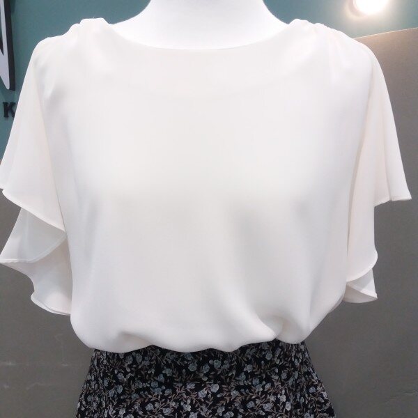 쉬폰 블라우스예요 어깨선에 약간의 셔링이잡혀있고 팔부분이 길지않게 되어있어서 여름철에 시원하게 착용할수있는 아이템이예요
