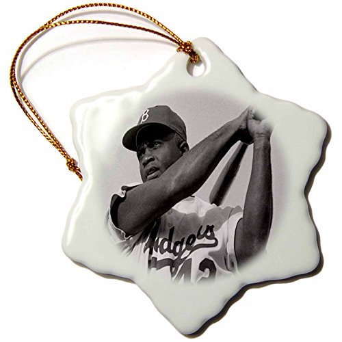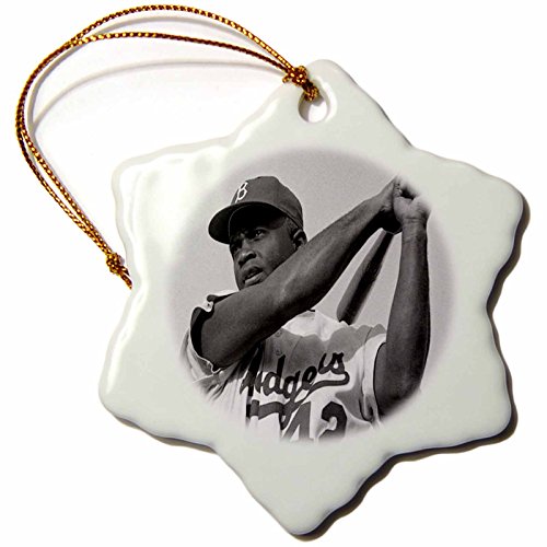 3dRose orn_80393_1 Picture of Jackie of The Brooklyn Dodgers Snowflake Porcelain Ornament, 3-Inch