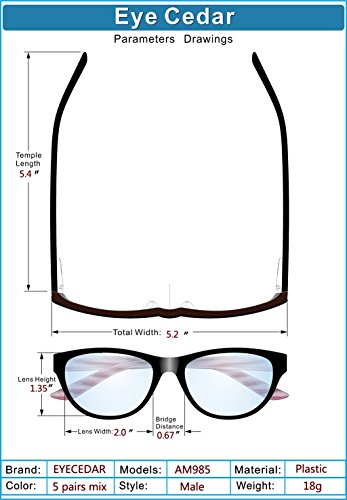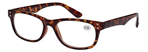-. Feature : Reading glasses men classic wayfarer style. 2 Years Warranty And Friendly Customer Service. / Metal sP.R.Ing hinges temple,strong and durable. Clear lenses to protect your eyes. / 5-Cloth Pouch for cleaning, storage and protection.Sun reader glasses for outdoor read. / 5 Color includes (Black, Tortoiseshell, Black progressive, Black Frames/ Tortoiseshell temple ) and sun readers. / Lens height: 1.35" ,Lens width: 2.0" , Bridge: 0.67" , Arm length: 5.4" , Total width:5.2"
