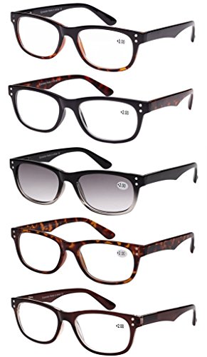 -. Title : Eyecedar Readers 5-Pack Metal SP.R.Ing Hinges Reading Glasses Men Wayfarer Style Included 5-Linen Cloth Pouch And Grey Sun Reader Glasses