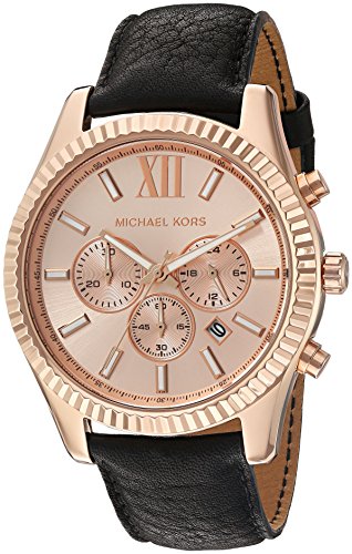-. Title : Men's Quartz Stainless Steel and Leather Automatic Watch, Color:Black (Model: MK8516)