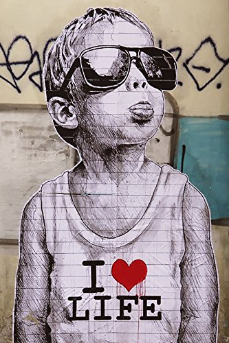 -. Title : Banksy I Love Life Boy Mini Papier Poster, Maßnahmen 59,4 x 42 cm