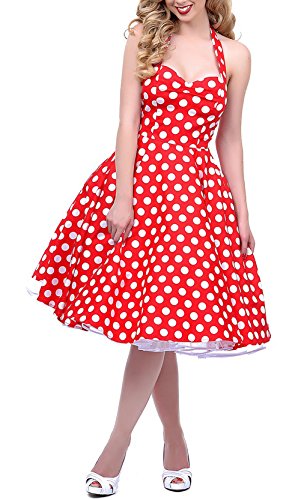 BI.TENCON 1950s Halter Style Vintage Polka Dot Swing Dress is a stunning cotton swing with a dash of stretch, complete in a cheeky large polka dot throughout. The princess seamed halter bodice has a subtle sweetheart neckline that flatters while the elasticized smocked back provides a versatile fit. A fabulously full circle swing skirt billows about at knee length, topping off this dedicated retro look.Feature