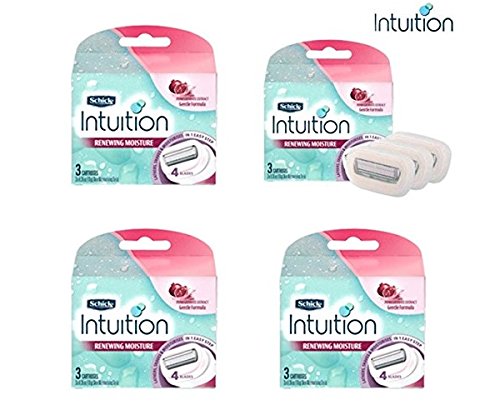 Schick Intuition Shaving Razor Refill Cartridge, 3 count, (4 Pack)