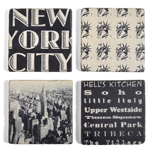 Studio Vertu New York City Marble Coasters, Black and White, Set of 4