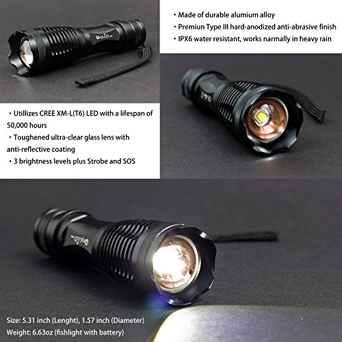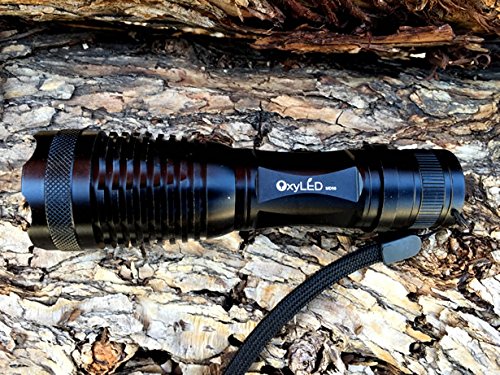 OxyLED OxyWild MD50 Super Bright LED Flashlight Bundle with Rechargeable Batteries, AC Charger, Charging Base and White Tube, Black