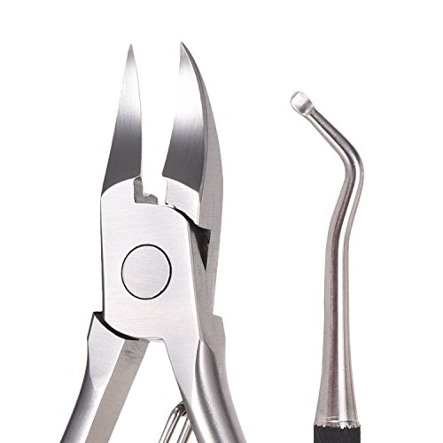 Ingrown toenail lifter – Lift ingrown part away from the skin. Not only a lifter, also an amazing nail cleaner. Double curved ends are mirrors for both left and right foot. With little spoons on it curved end’s that make it gets under even the closest toe nail to grab even the smallest bits of debris