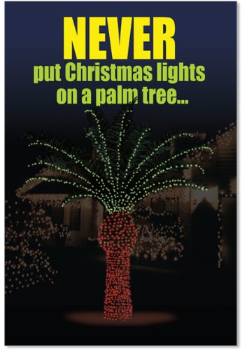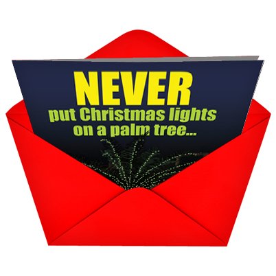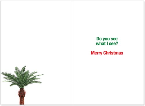 B1916 Box Set of 12 Christmas Light Palm Tree Unique Funny Christmas Cards with Envelopes