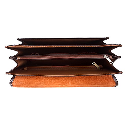 -. Feature : Double handles approximately 15.2 *11.3" 4.3inches drop be able to used comfortably, including an extra adjustable long strap, this purse may do four uses: briefcase, laptop bag, handbag, messenger bag / 100% Guarantee genuine - excellent Crazy Horse cow leather;Brass hardware and plastic feet for stability and durability / Inside is nicely lined with durable fabric, has a wall zippered pocket and two additional pockets (fits for wallet and mobile telephone) / Adjustable, padded and detachable leather & shoulder strap / The front flat with zipper closure is great for quick-access items, while the main compartment protects a laptop and files.
