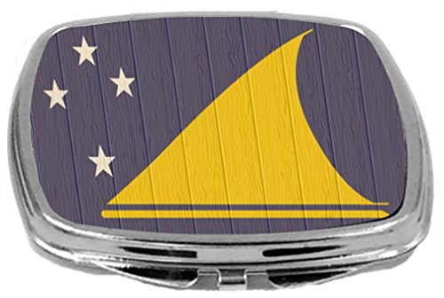 Rikki Knight Compact Mirror on Distressed Wood Design, Tokelau Flag, 3 Ounce
