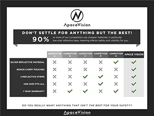 Studio : Apace Vision Publisher : Apace Vision Product Description Apace Vision High Visibility Reflective Vest, 2-Pack Did you know that several thousands pedestrians and cyclists are killed every year in the traffic, only in the US? Can you afford not to be seen? Many of these accidents could have been completely avoided just by wearing simple high visibility clothing, such a reflective safety vest. Being a pedestrian near or on a roadway can be very dangerous. Wearing our reflective vest gives you the protection and safety you need so that you can feel safe and at ease, in any low visibility situation. It will keep you seen, anywhere, anytime! Features and Benefits ? 360˚reflective coverage, with 2 reflective strips for maximum reflectivity and visibility ? Adjustable waist and shoulder straps to fit almost any body size ? Front access quick-clip release ? Bright color to be seen in any environment involving poor visibility ? Lightweight with 100% elastic, polyester material for maximum comfort and convenience An Essential Tool For Every Outdoor Activity This highly reflective vest is the perfect tool to brighten up your outdoor activities. It gives you a hassle-free experience doing the outdoor activities you love and has a wide range of applications due to its versatile design, including, but not limited to: ? Running ? Jogging ? Walking and dog walking ? Cycling or motorbiking ? Traffic/construction work ? Roadside emergencies We know you're going to love our reflective vests, that's why we are offering a full 1 year warranty and 30 day money back guarantee, when you order today. This offer is only valid for a limited time. Click "Add to Cart" to INVEST in your safety NOW! 0