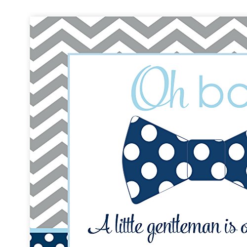 Celebrate your upcoming babies shower in style with this bow tie theme invitation. A dapper style fill in invitation that is perfect for the little man baby shower you are hosting. Printed invitation set has grey chevron stripes, navy blue polka dots and finished with accent colors in baby blues. Bow tie announcement offer a wonderful way to share details with your family, friends and loved ones. Each invite set includes 15 flat invitations, printed on 120 lb. card-stock with lines so you personalize and write in your own event details. Bow tie invitations paired with 80 lb. grey envelopes that have a square self-seal flap. Why order fill-in invitations ? Quick, easy and fun ? Stylish design that allows you the chance to personalize ? Ready to use, no printing required Additionally, you can also attach these modern bow tie invitations for a baby boy sprinkle, diaper party, twins shower, or coed baby shower. Order your invitations with envelope set today! 0