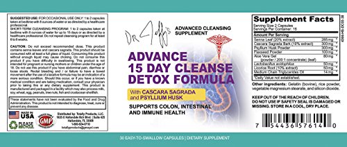 -. Binding : Health and Beauty -. Brand : Totally Natural Remedies -. Feature : ADVANCED CLEANSE FORMULA: Dr. Jeff's 15 Day Cleanse is an advanced all natural herbal cleanse that provide a gentle, all natural laxative to help free the intestinal tract of excess waste without irritating the body. / SUPPORTS HEALTHY DIGESTION FOR WEIGHT LOSS & HIGHER ENERGY LEVELS: Dr. Jeff's formula helps to repair the inner membrane of the intestinal wall helping to eliminate dozens of toxins that can build in the large and small intestine which can leave you feeling lighter and more energized. / QUICK, NATURAL, & EFFECTIVE: The 15 day cleanse is just the right amount of time for quick results. Dr. Jeff knows that healthy digestion is important and this formula promotes cleansing of the digestive tract. This can help reduce bloating, which can help you lose weight, increase overall health and regularity, improve digestive health, and restore good bacteria in your colon. / CLEAN, TRUSTED, & SAFE: Our product is 100% Pure. Made in the USA and GMP Tested. -. IsAdultProduct : 0 -. Label : Totally Products LLC -. Manufacturer : Totally Products LLC -. MPN : 897284652 -. PackageQuantity : 1 -. PartNumber : 897284652 -. ProductGroup : Health and Beauty -. ProductTypeName : HEALTH_PERSONAL_CARE -. Publisher : Totally Products LLC -. Studio : Totally Products LLC -. Title : Dr. Jeff's Colon: Advanced 15 Day Detox Cleanse Formula to Support Weight Loss, Colon, Intestinal & Immune Health with Cascara Sagrada, Senna Leaf, & Psyllium Husk