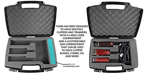 - Protective Case With Foam Compartments Designed to Hold One Clipper , Trimmer and T-Finisher With Cables , Blades and Customizable Accessory Compartment - MEASURES 6.5" x 12.0" x 3.75" in exterior dimensions