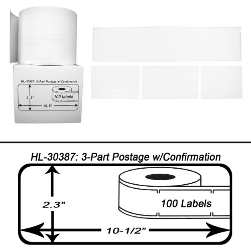 - Title : DYMO-Compatible 30387 3-Part Internet Postage Labels (2-5/16" x 10-1/2") -- BPA Free! (6 Rolls; 100 Labels per Roll)