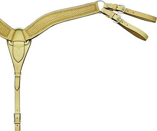 Product DescriptionRoper breast collar with 2 1/2" wide Basket weave tooled shaped saddle leather, hand rubber edges and 1" tiedown and tug straps.0