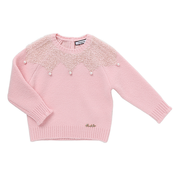 상품설명 핑크 진주장식 스웨터입니다. 포근한 벌키사에 부클사를 매칭하여 소재에서 오는 리치함이 고급스럽습니다. 진주장식으로 마무리를 해준 스타일입니다.