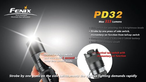 CREE XP-G white LED with 50,000-hour lifespan; uses two three-volt CR123A batteries; 127-millimeter length and 25.4-millimeter diameter with 61-gram weight (excluding batteries)