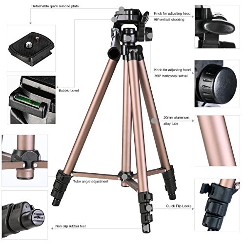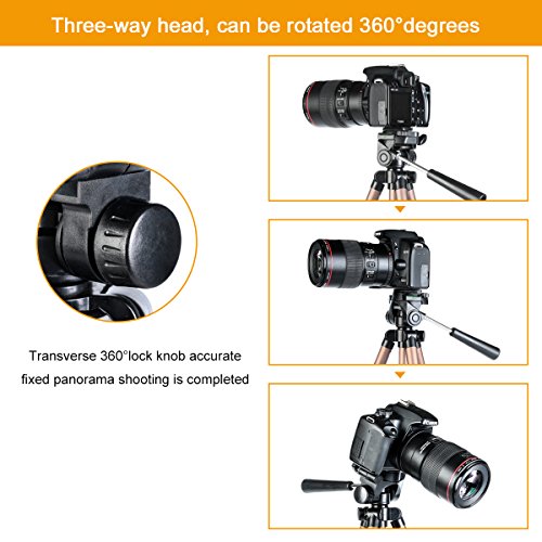 Adjustable-height tripod made of lightweight aluminum; Compact tripod for photo and video shooting.