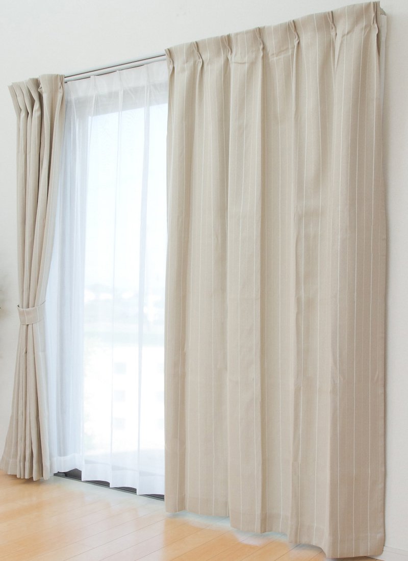 The thick curtain uses the fabric of the wind weaving (double weave), and since black thread is sandwiched in the fabric, we have achieved moderate light shielding properties.