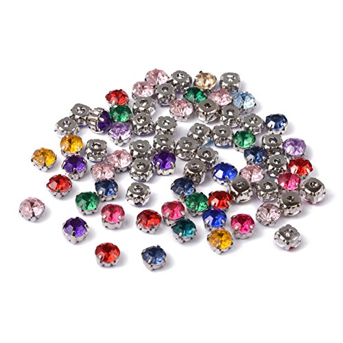 Pandahall 100pcs Montee Beads Nine-holes Mixed Color Acrylic Rhinestone Montee Beads with Brass Findings Clothing DIY Embellishment