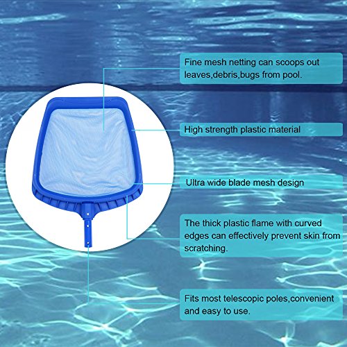 Strong Frame:Strong,thick and durable frame with molded plastic rounded borders and mesh net bag for the best swimming pool cleaner accessory.