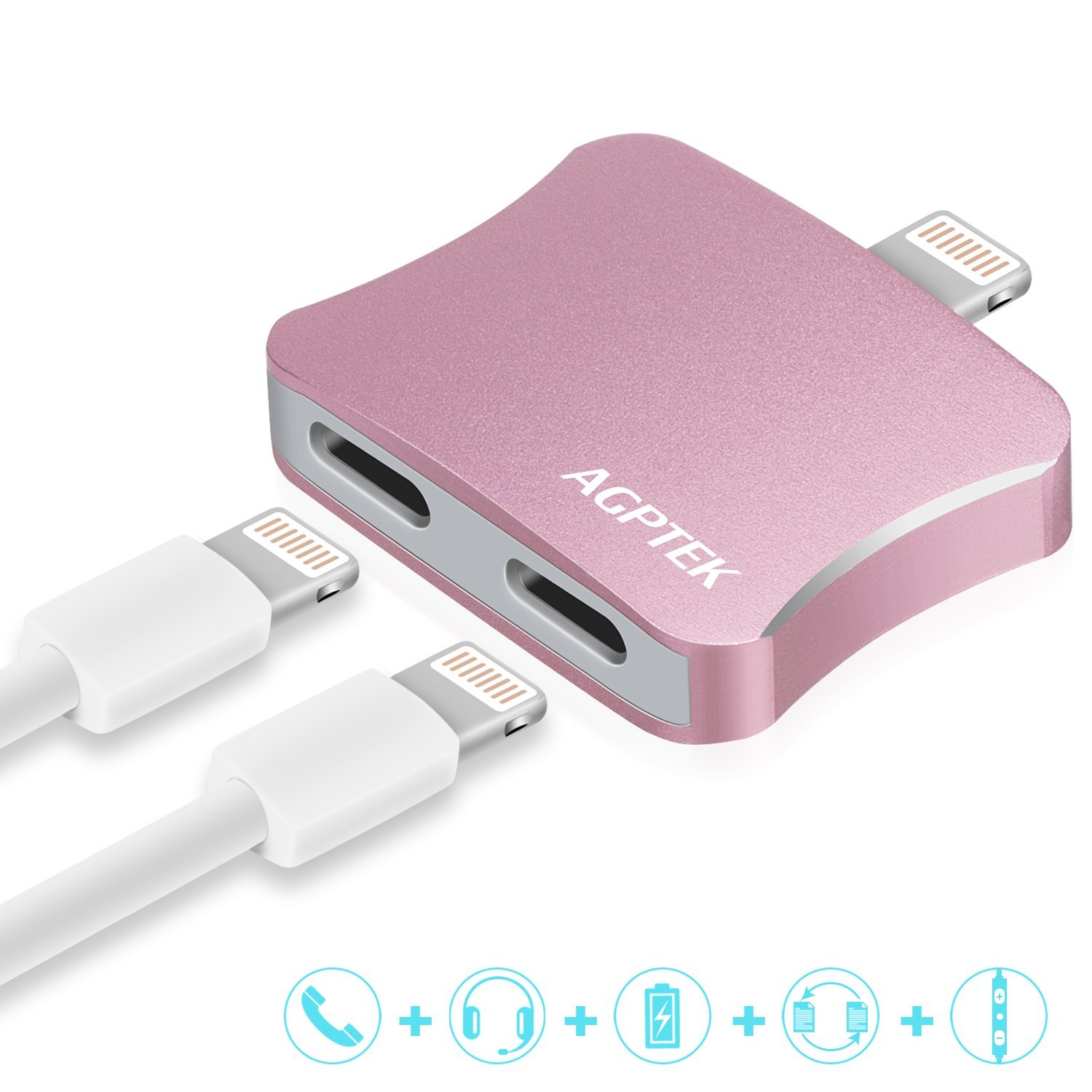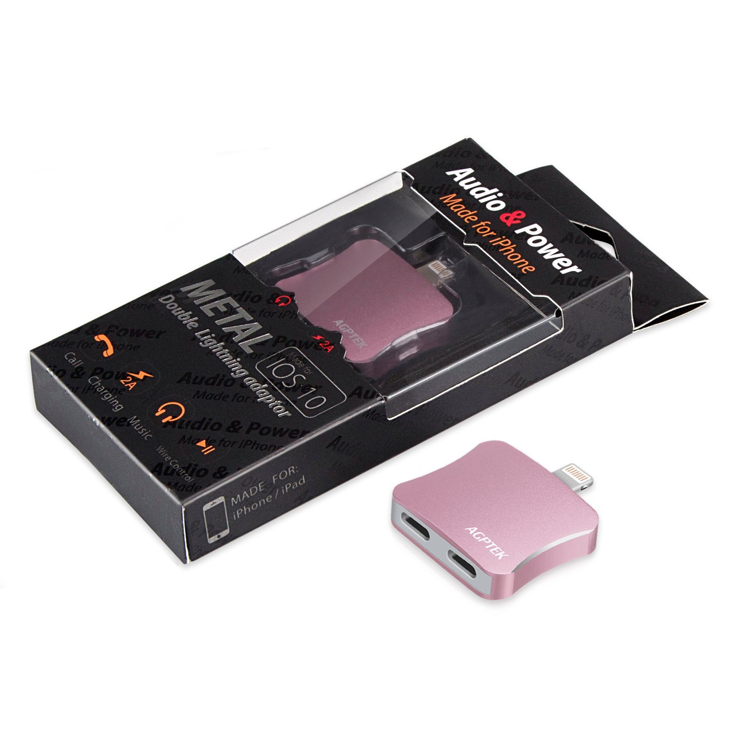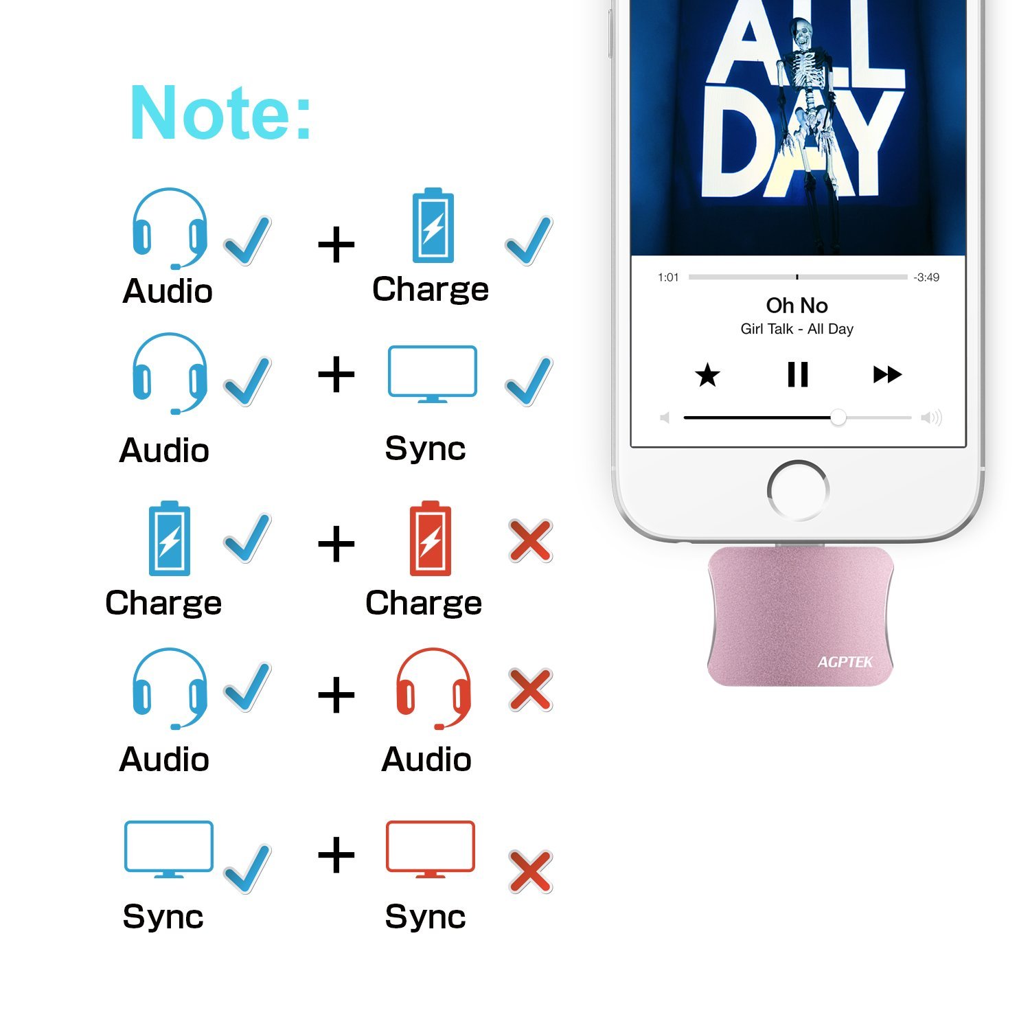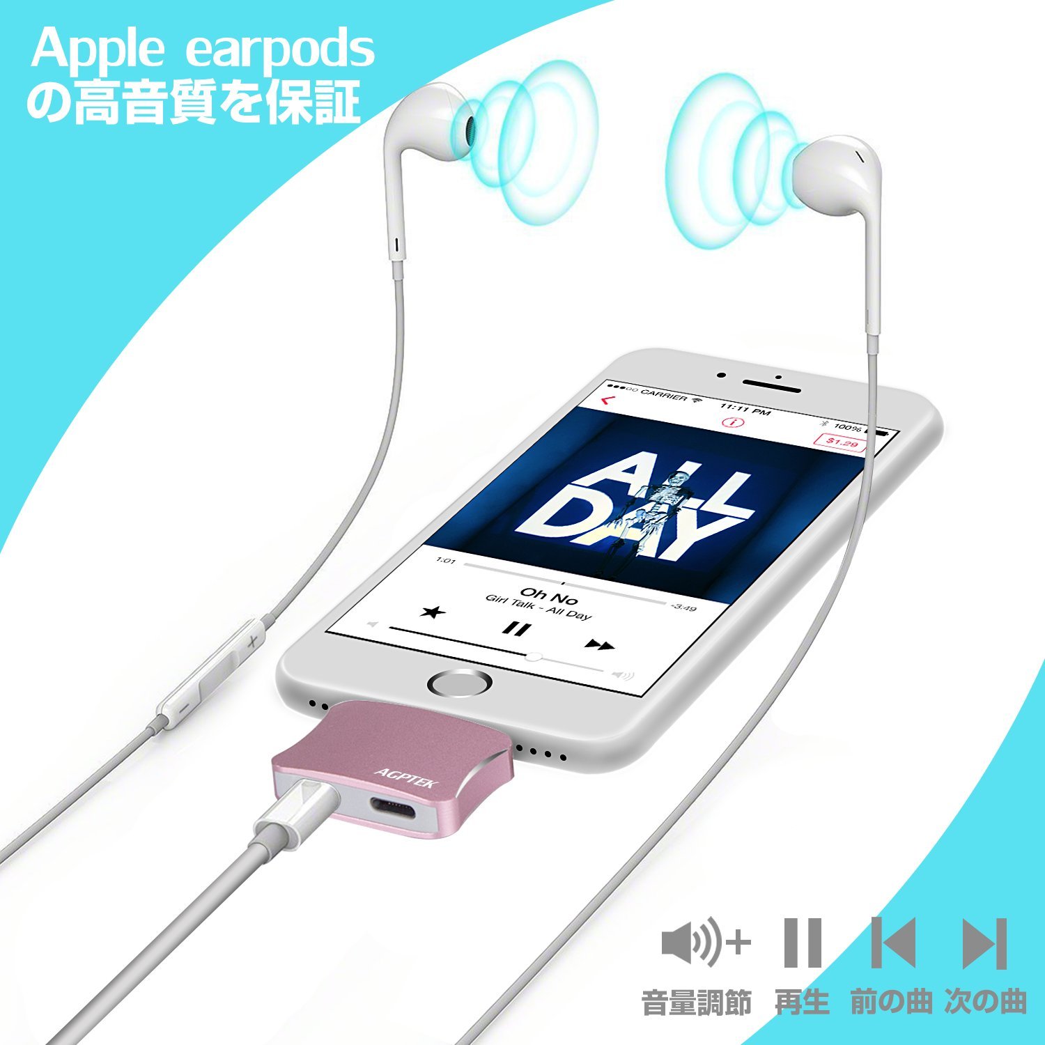 Insert the earphone and the USB cable into the Lighting jack, then connect the adapter and Apple equipment.