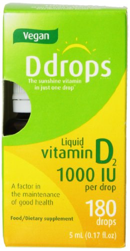 -. Binding : Health and Beauty -. Brand : Ddrops -. EAN : 0851228000323 -. Feature : Vitamin D has long been known for its value in bone and muscle strength development, and for helping to prevent bone fractures / Is designed to be licked off any clean surface such as the back of a washed hand or a spoon / Recent studies show that the greatest benefit of vitamin D is to decrease the future risk of chronic illnesses -. IsAdultProduct : 0 -. Label : Ddrops -. Manufacturer : Ddrops -. Model : 116781-6 -. MPN : 116781-6 -. NumberOfItems : 1 -. PackageQuantity : 1 -. PartNumber : 116781-6 -. ProductGroup : Health and Beauty -. ProductTypeName : HEALTH_PERSONAL_CARE -. PublicationDate : 2013-08-22 -. Publisher : Ddrops -. ReleaseDate : 2013-08-19 -. Size : .17 FZ -. Studio : Ddrops -. Title : Ddrops Vegan 1000 IU Drops, 180 Count -. UPC : 851228000323