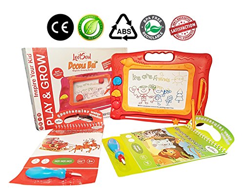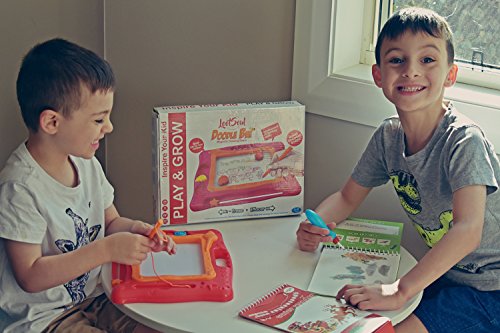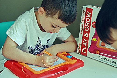 Let your bzzzy bee boys and girls sketch a pet, doodle a poodle, scribble a riddle, paint a magical painting with this awesome travel toy for drawing, painting and stamping all day creative play. Finally, an interactive toy that is truly "wireless" and wonderful. Give your kids a break from technology with this wonderfully imaginative and educational activity center that will not only provide endless hours of cool, creative fun but also doesn't need to be "connected". A perfect choice for birthday and holiday gifts.