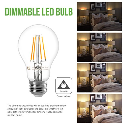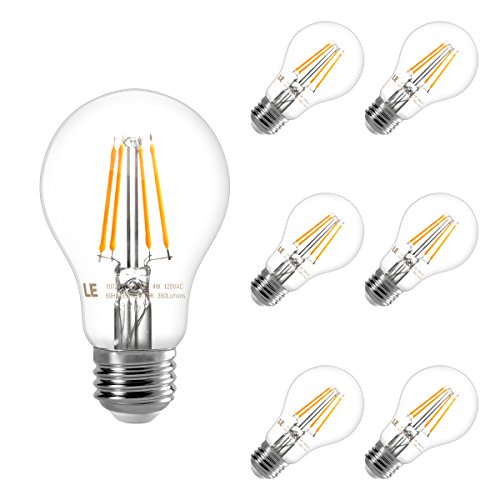 LE 6 Pack Dimmable Edison A19 LED Bulbs, 4W Vintage LED Squirrel Cage Filament Light Bulbs, 40W Equivalent, 350 lm, 2700K Warm White, 300° Beam Angle, E26 Base Bulbs for Home and Commercial Lighting