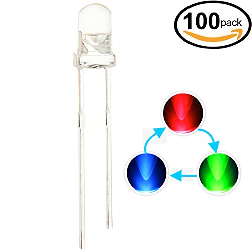 Waycreat 100 PCS 3mm Clear RGB Multicolor Slow Flashing (Multi Color Changing) Dynamics LED Emitting Diode Lights (Blinking Round DC) Light Emitting Diodes Electronics Components Filcker