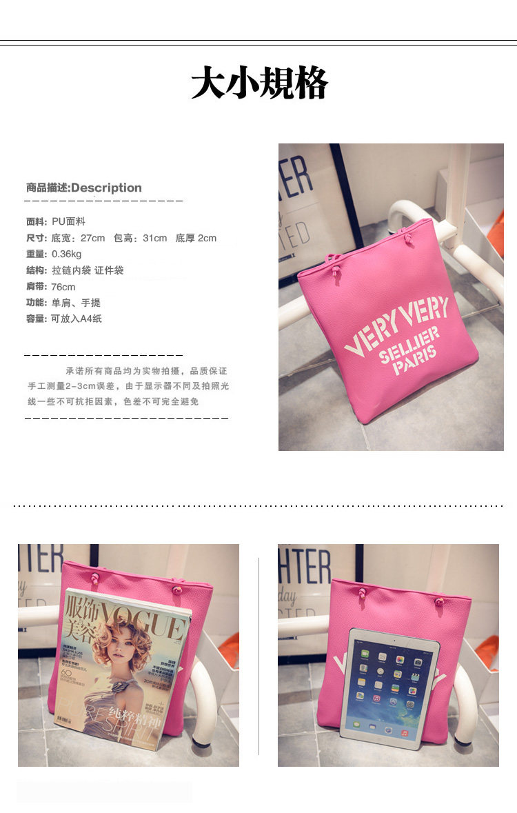 2016初秋新款欧美大牌水洗皮单肩女包简约字母印花女士购物大包