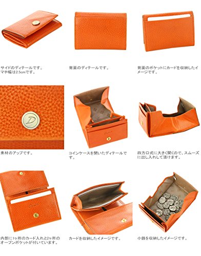 -. Feature : 外寸:縦7cm×横10cm×まち2.5cm ・メイン小銭入れ:1ヶ所(四方口式) / 内ポケット:オープン×2 ・外ポケット:オープン×1 / 表素材:イタリア製牛革 ◇手ざわり:柔□□■□□硬(※表記は目安です) ・裏地:有り