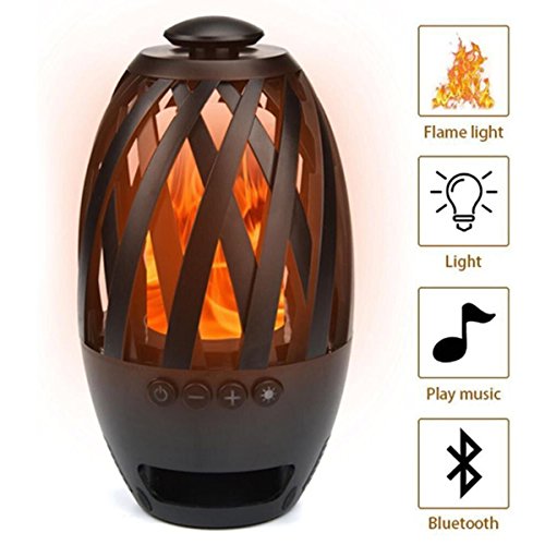 -. Feature : 96 GORGEOUS LED LIGHT -- Each LED flickers warm yellow lights, forming a stunning flame, mimic extremely realistic & natural dancing flames,combined with audio function, to create a romantic atmosphere for you, enjoy the Superb gorgeous dancing flame / BLUETOOTH 4.2 CSR PAIRS 2 DEVICES MEANWHILE -- Quickly connect it with your iPhone iPad laptop or android devices by bluetooth inside, compatible with all electronic devices supporting bluetooth 4.2 or below, with stereo sound and enhanced bass 5W uprated speaker, just enjoy your favorite music freely.(a bluetooth device can connect two speakers at the same time but a speaker can only be connected by one device);The way to connect 2 device: Open the 2 speaker at the same time, wait sever / LOUDLY HIGH QUALITY VOICE -- Adopt a 52mm high-performance driver, provide strong bass without distortion even at highest volume, you can experience your music in full-bodied stereo. Enjoy clear audio with impressive volume powered by 5 watt drivers. Hear the soaring highs and deep lows of all your favorite tracks. / HIGH-QUALITY -- Product Dimensions: Length 18cm x Diameter 10cm; Made of high-duty ABS plastic, bulit-in 1800mAh recharging battery; With micro SD(TF) card slot; the soft yellow light of the lamp flame light protect your eyes when sleep, Repose / THE PERFECT GIFT for VATIOUS OCCASION: Xmas Gift, perfect for girl/boyfriend, perfect for students in dorms, party goers at celebrations, families at special events, and children for relaxing. Especially ideal as holiday GIFT, birthday present, housewarming gift or simply as a personal treat
