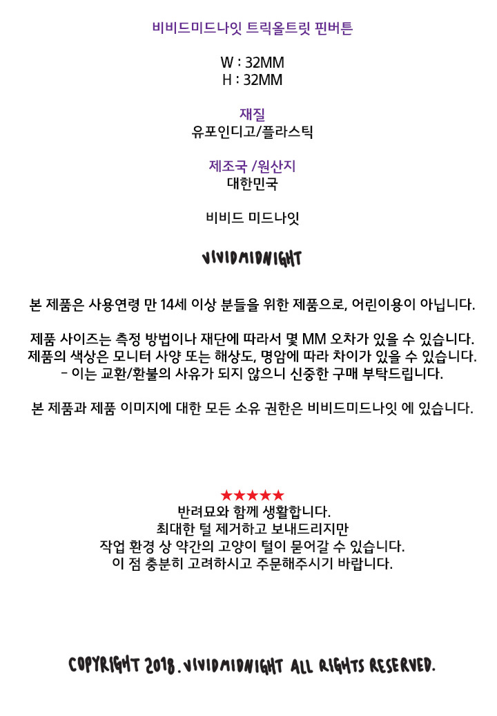 반려묘와 함께 생활 합니다. 최대한 털 제거하고 보내드리지만 작업 환경 상 약간의 고양이 털이 묻어갈 수 있습니다. 이 점 충분히 고려하시고 주문해주시길 바랍니다.