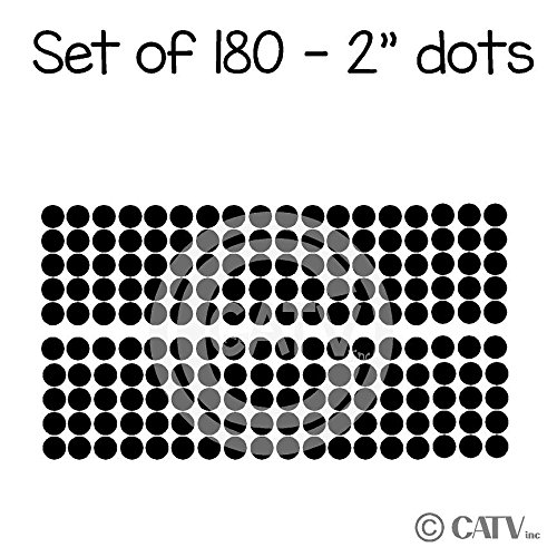 -. Brand : The Open Canvas -. Feature : Each dot measures 2" H x 2" W / Comes with easy to apply instructions / Can be applied to most walls including textured / Can be removed without damaging walls / High end decorating on a budget -. Label : The Open Canvas -. Manufacturer : The Open Canvas -. PackageQuantity : 1 -. ProductGroup : Furniture -. ProductTypeName : HOME_FURNITURE_AND_DECOR -. Publisher : The Open Canvas -. Studio : The Open Canvas -. Title : 2x2 Set of 180 Polka Dot Circles vinyl decal home decor wall art