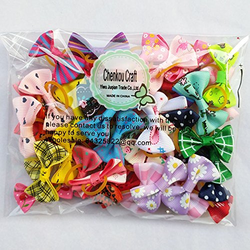 -. Title : Chenkou Craft 50pcs/25pairs New Dog Hair Bows With Rubber Band Bow Pet Grooming Products Mix Colors Varies Patterns Pet Hair Bows Dog Accessories