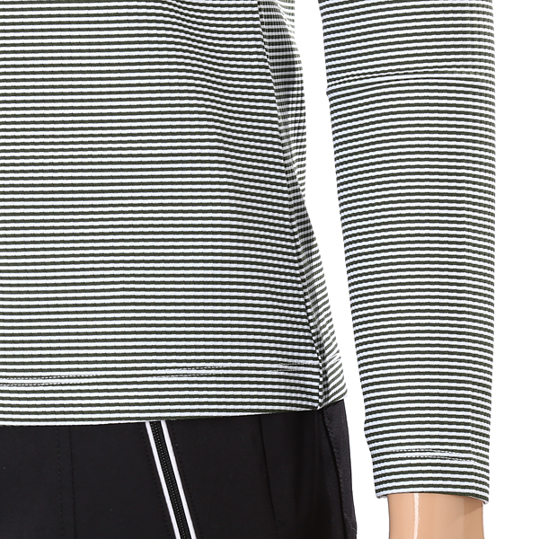 유럽 수입소재로 터치감과 신축성이 우수하여 착용감이 편안함. 세로 조직에 잔잔한 가로 스트라이프 패턴이 퍼포먼스 라인의 Yellow, khaki, blue 아우터, 팬츠및 스커트와 함께 필드룩을 연출하기에 용이함.