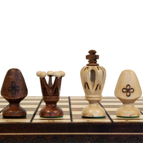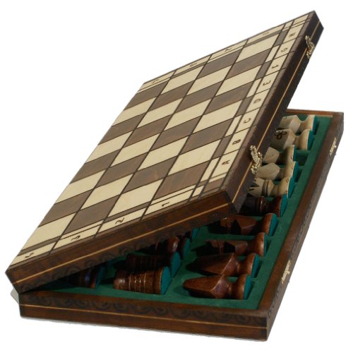 This chess set is a wonderfully detailed collectible carved of solid hornbeam wood. Each chess piece is individually handcrafted. Folding Birch wood chess board stows away your chess pieces inside when you're not playing. Made from renewable plantation wood.
