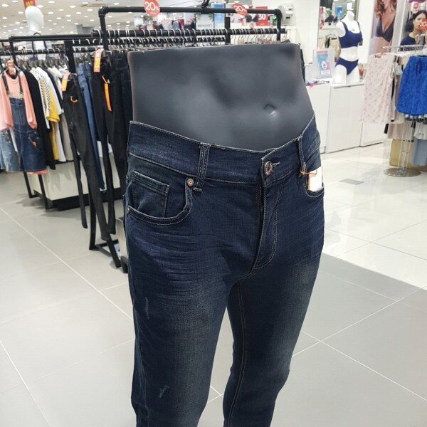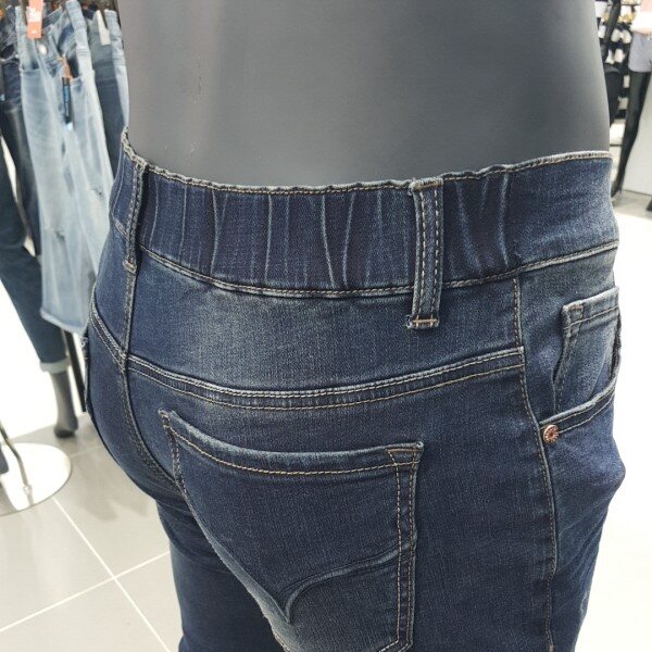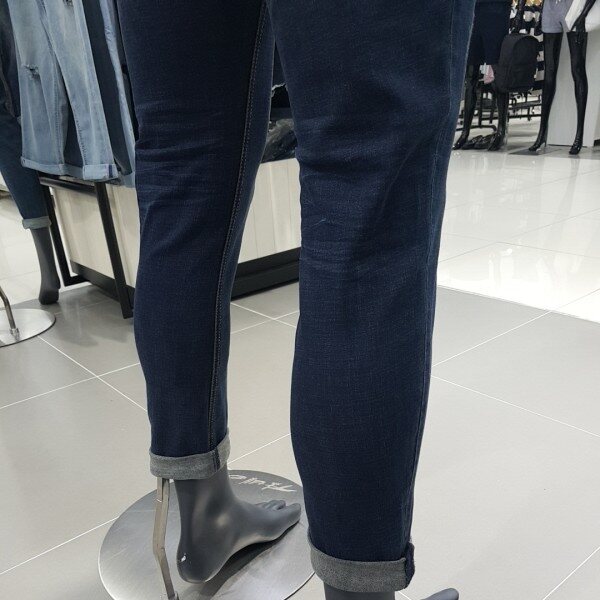 앞부분은 여밈이 있고 뒤오비 부분 안쪽에만 밴드를 삽입해서 편안함과 실용성을 겸비했습니다. 다크한 인디고 칼라의 엠보워싱 남성 BS핏 데님 스타일입니다~