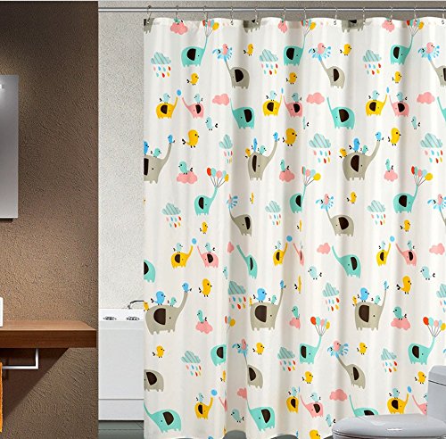 Ao blare elephant and bird Polyester Fabric waterproof mildew proofing Shower Curtain bedroom curtain, 72 x 72 Inch (Multi)