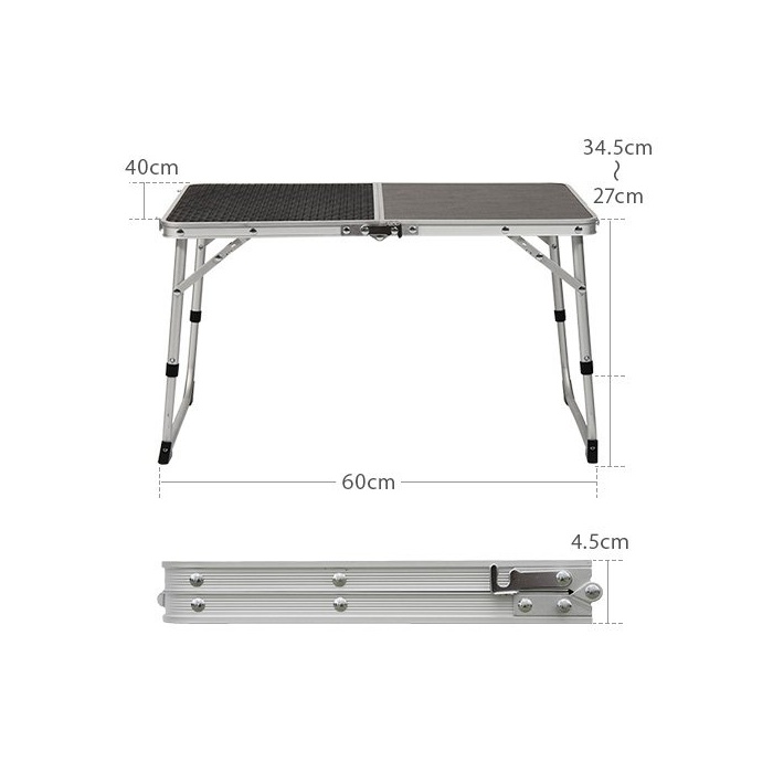 사용 시 사이즈 : 약60×40×27/34.5cm 수납 시 사이즈 : 약40×30×4.5cm 중량 : 약1.4kg 재질 : 프레임/알루미늄 (책상이나 카운터의) 널찍하고 평평한 윗부분:melamine 가공MDF내열 판 스틸 메쉬 내하중5kg