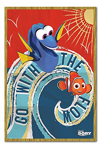 -. Title : Finding Dory Go With The Flow Poster Magnetic Notice Board Oak Framed - 96.5 x 66 cms (Approx 38 x 26 inches)