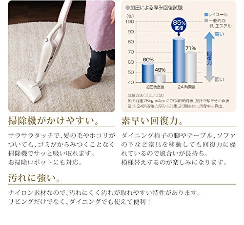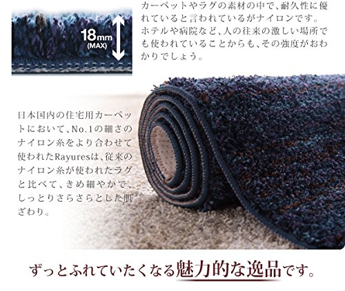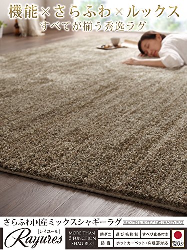 -. Feature : さらふわ国産ミックスシャギーラグ【rayures】レイユール 100×140cmの「アイボリー 」のタイプです。商品機能の説明上、タイトルと違う色やサイズの商品写真を掲載する場合がございます。あくまでも商品タイトルの「色」や「サイズ」が正しいものとなりますことをご理解の上ご購入ください。 / 「気のMIXシャギー」x「防ダニ・防音などのニーズの高い機能」の相乗効果で幅広いニーズをキャッチ! / 機能xさらふわxルックスすべてが揃う秀逸ラグ----------------------------------------さらふわ国産ミックスシャギーラグrayuresレイユール8COLORx7SIZEfunctionxcomfortablenessxdesign=∞----------------------------------------防ダニ/防音/遊び毛抑制/ホットカーペット・床暖房対応/すべり止め付き/国産#001:functionラグの常識を変えた超極細ナイロン糸使用抜群の肌ざわり&うれしい機能が満載]]]業界No.1の超極細繊維使用さらふわ&軽やか極細のナイロン糸がつむぐ極上の肌ざわわり「この心地よさ、手放せない。」カーペットやラグの素材の中で、耐久性に優れていると言われているがナイロンです。ホテルや病院など、人の往来の激しい場所でも使われていることからも、 / その強度がおわかりでしょう。日本国内の住宅用カーペットにおいて、No1の細さのナイロン糸をより合わせて使われたrayuresは、従来のナイロン糸が使われたラグと比べて、きめ細やかで、しっとりさらさらとした肌ざわり。ずっとふれていたくなる魅力的な逸品です。★掃除機がかけやすい。サラサラタッチで、髪の毛やホコリがついても、ゴミがからみつくことなく掃除機でサッと吸い取れます。お掃除ロボットにも対応。遊び毛が出にくい長い繊維なのでとても清潔に過ごせます。★素早い回復力。ダイニング椅子の脚やテーブル、ソファの下など家具を移動しても回復力に優れているので風合いが長持ち。模様替えするのが楽しみになります。★汚れに強い。ナイロン素材なので、汚れにくく汚れが取れやすい特性があります。リビングだけでなく、ダイニングでも使えて便利!]]]やんちゃなお子さん&ペットがいても安心防音&防ダニ機能★防ダニ加工でアレル / ゲンの心配なし!ダニが嫌がる成分を使い、ダニを寄せ付けずに追い出す効果がある薬剤を裏加工剤に使っています。使用している薬剤は、経口毒性、皮膚刺激などの厳密な試験を繰り返して安全性の高さはお墨付き。またその効果は持続性に優れているので、小さなお子さんやペットなど大事な家族を守ってくれます。★防音効果で階下への気遣い軽減!室内の騒音を遮音する効果に優れた製品。階下に足音や走り回る音などの生活音がほぼ聞こえない防音効果があります。階下への音漏れが気になる、小さなお子さんがいるご家庭やマンション暮らしの方におすすめです。★しかもF★★★★ホルムアルデヒドの放散が最も少なく安全な商品です。#002:COLOR&SIZEお部屋ごとに欲しくなる8色x7サイズ展開・100x140cmLIGHTGRAY:薄いグレーとホワイトのミックスカラー。優しく上品なイメージに。一人暮らしのベッドサイドにピッタリサイズ。