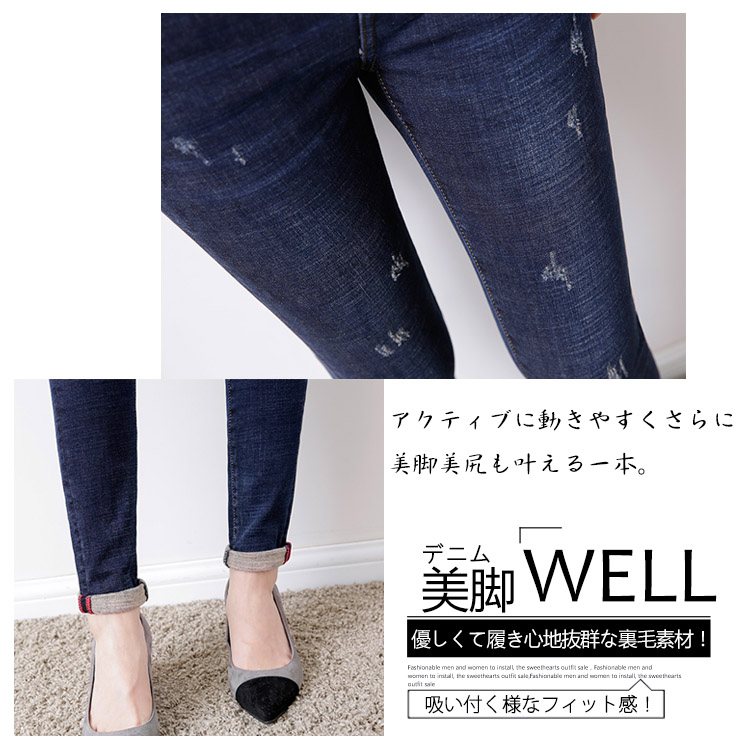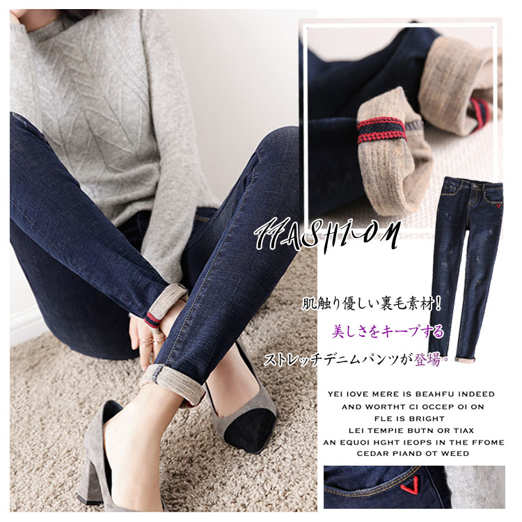 | 肌触り優しい裏毛素材!美しさをキープするストレッチデニムパンツが登場。足首がロールアップできるので女性らしいほっそりとした美脚シルエットをメイク。アクティブに動きやすくさらに美脚美尻も叶える一本。ストレッチ生地を採用してフィット感抜群のスマートシルエットにヒールパンプスを合わせて美脚効果を最大限に引き出す着こなしがおすすめです。 | |