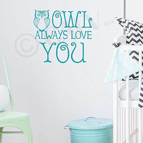 Owl Always Love You Vinyl Lettering Wall Decal Sticker (12.5"H x 13.5"W, Turquoise)
