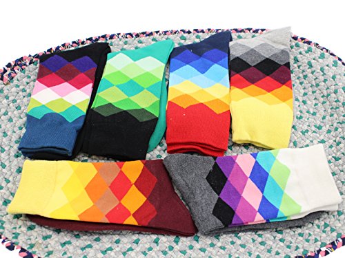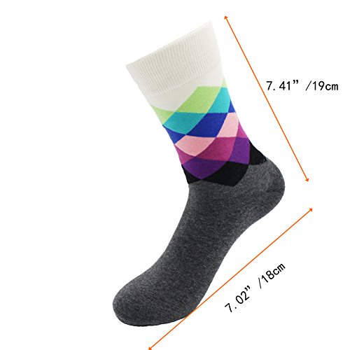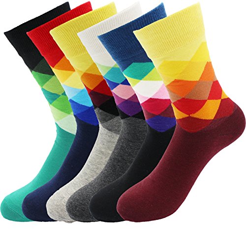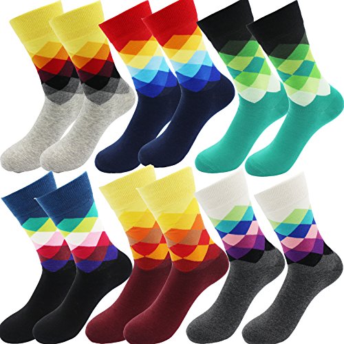 -. Binding : Apparel -. Brand : Yaobabymu -. ClothingSize : One Size -. Color : Multicolour -. Department : mens -. EAN : 0611029765957 -. Feature : 76% Cotton for comfort,22% Nylon for breath-ability,2% Spandex to keep sock up for the perfect amount of stretch and softness . If you are not completely satisfied with this product for any reason,pls contact us for FULL REFUND within 30-Day to express apologize for you at any time / Men Crew Socks Argyle Socks Size:suitable for Mens 6-11, Womens 7-12; Length 18cm/ 7.02inch,Tube length:19cm/ 7.41inch.They are elastic and perfectly make it suitable for your feet / Argyle Bright Unique Stylish Colorful Designs,Non-Slip ,Softness,Breathable,Long-Lasting Durability,Moisture-wicking and Odor-fighting,Natural Comfort / Men's over the cuff dress socks:Suitable for all seasons, especially sP.R.Ing,autumn and winter,Let your mood be bright and happy,Get rid of your boring socks / Package:6 pairs Funny Argyle High Fun Sock (diffrent colors) +1 Gift Card -. IsAdultProduct : 0 -. ProductGroup : Apparel -. ProductTypeName : SOCKSHOSIERY -. Size : One Size -. Title : Yaobabymu 6 Packs Men Dress Socks Novelty Funny Colorful Argyle High Fun Sock Casual Crew Socks -. UPC : 611029765957
