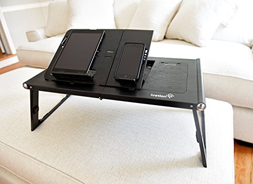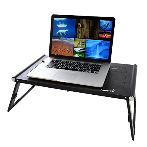 Ivation Multi-Angle Adjustable Folding Smart Table, Stand, Standing Desk for Laptop & Tables with Rechargeable Built-In Power Bank 13,200 mAh, 2 USB Ports & Reading Lamp